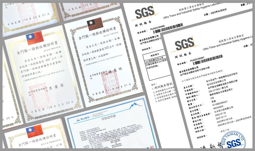 金太武一條根產品通過「不含西藥」、「不含重金屬」等多項SGS檢驗