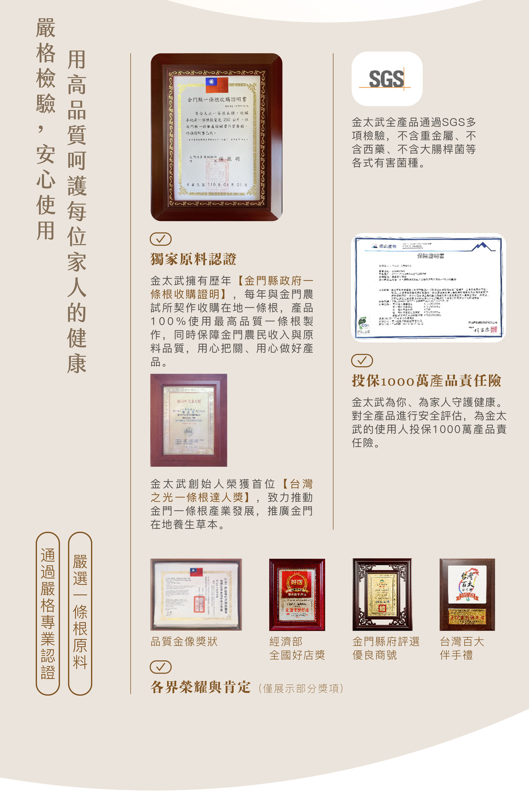 金太武為歷年皆獲金門縣政府農試所契作認證品牌,品質優良。
