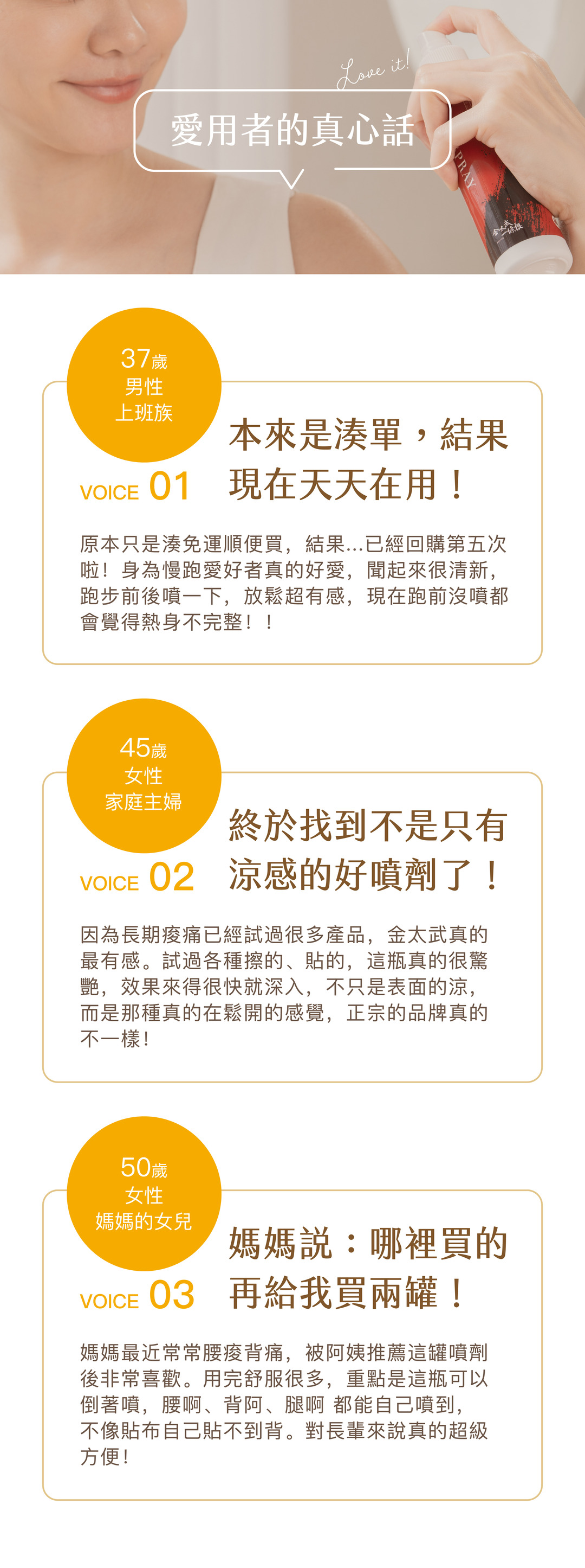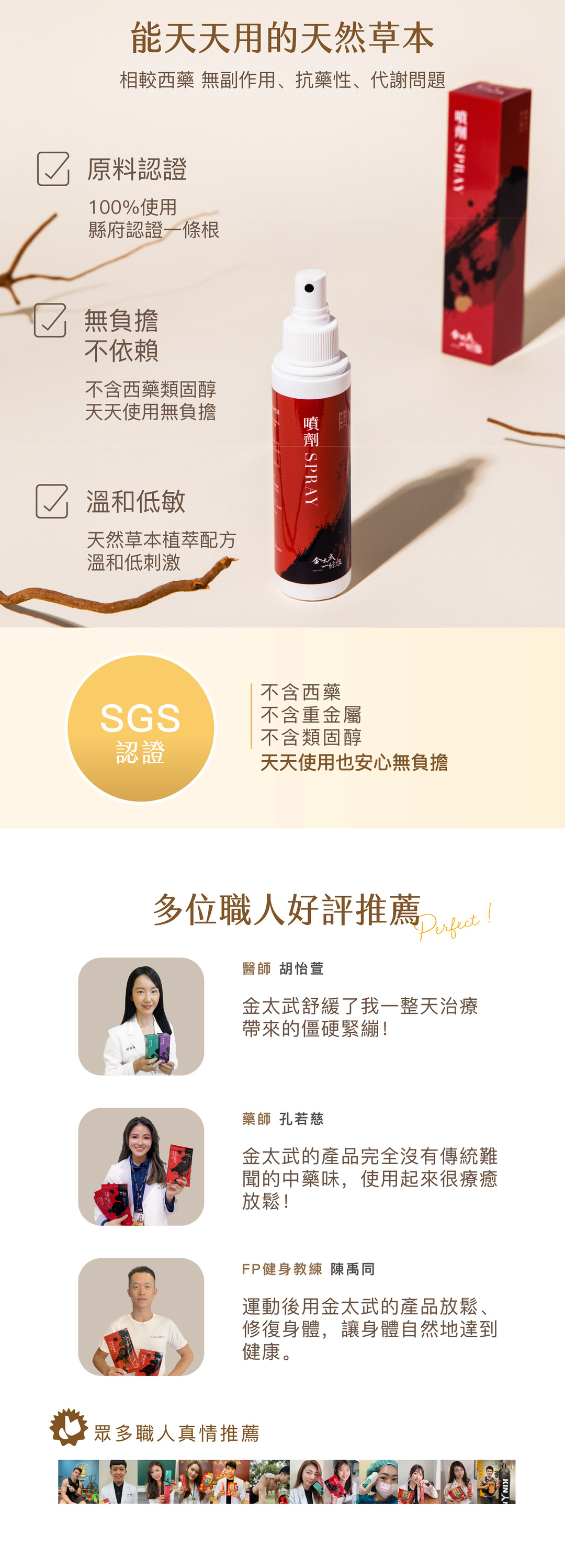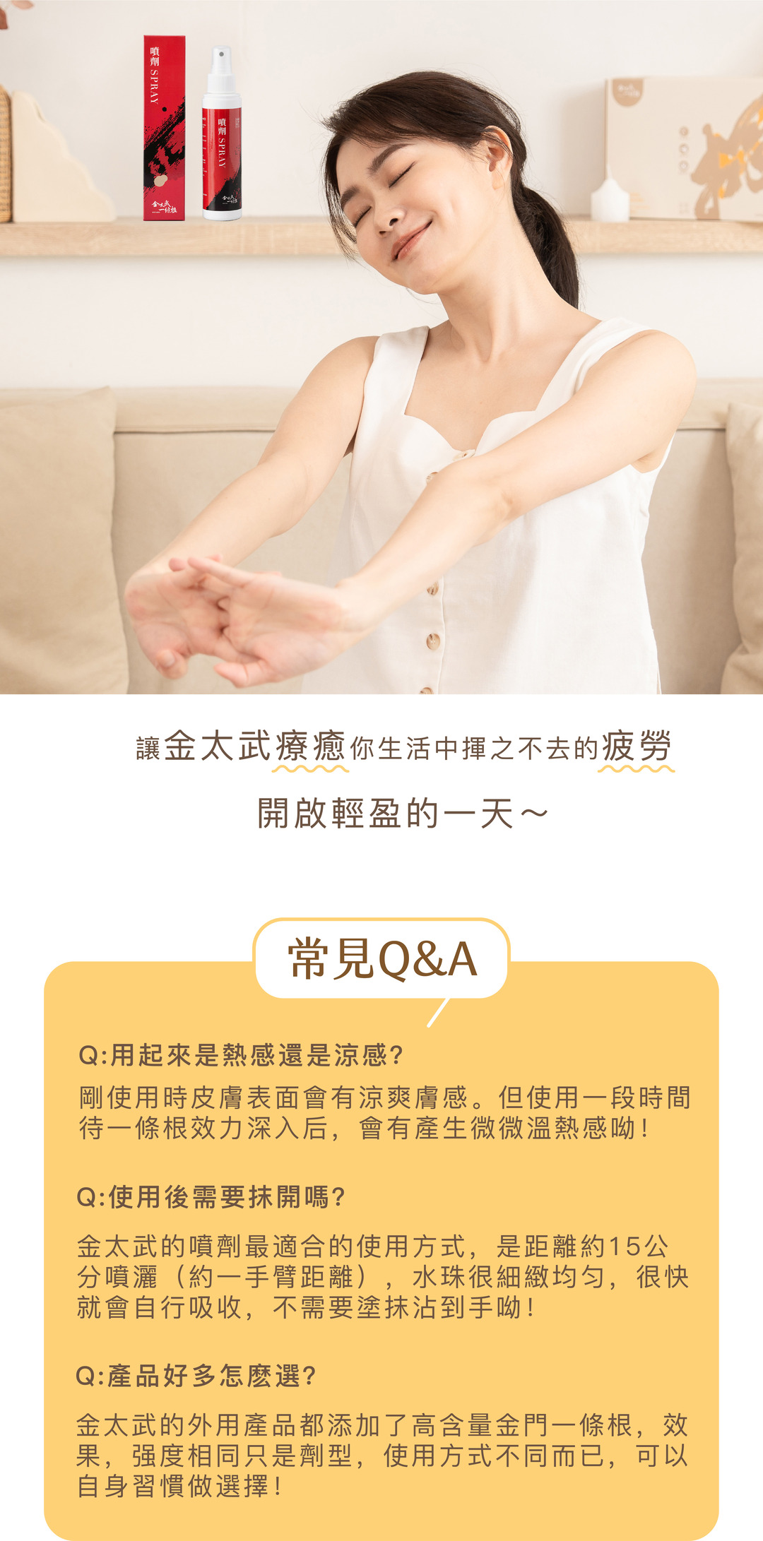 成分:金門一條根萃取液、純水、薄荷精油、尤加利精油、檜木精油、檀香精油、薑萃取液、酒精。